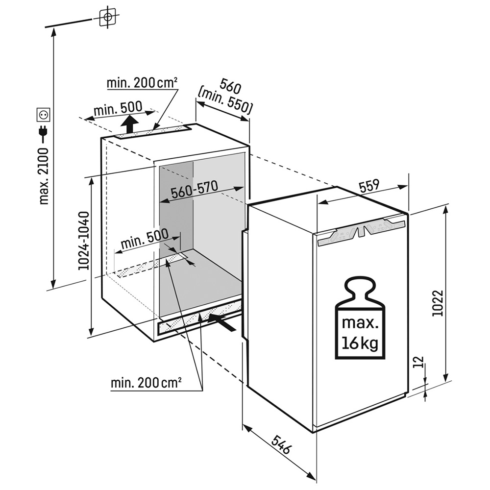 | Nutzinhalt gesamt: | 166 l |